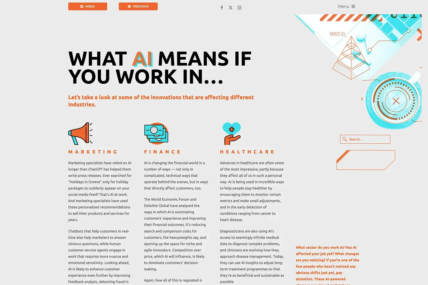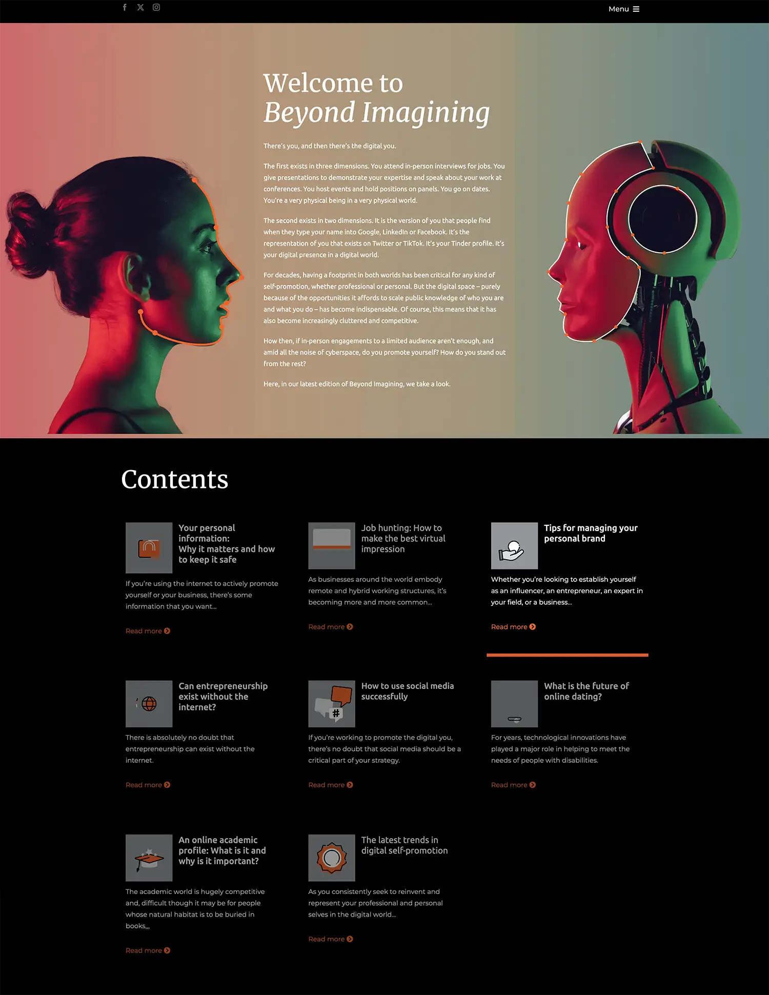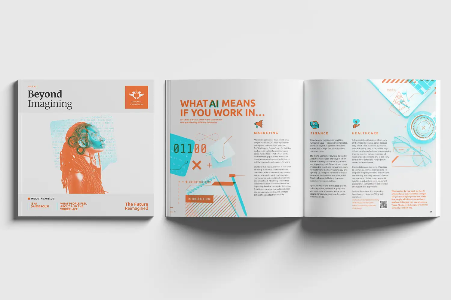 University of Johannesburg’s special site to discuss all things Fourth Industrial Revolution (4IR). The original design look-and-feel were created by HKLM. The interpretation of both the website and online versions of the 4IR magazine Beyond Imagining, which is not just a pdf of a magazine you flip though, but one that brings an interactive experience to the reader, was created by me.